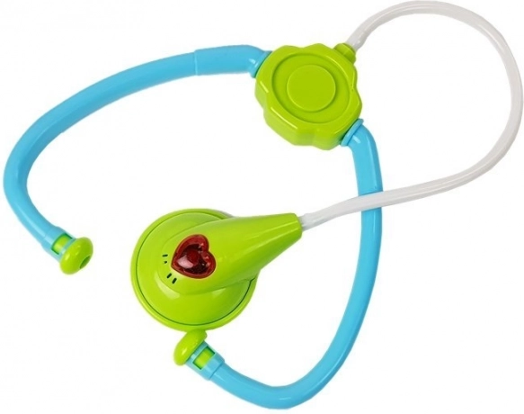 Lekki plastikowy stetoskop w wyrazistych kolorach wspiera zabawy w odgrywanie ról i zapoznaje dzieci z podstawowymi narzędziami medycznymi.
