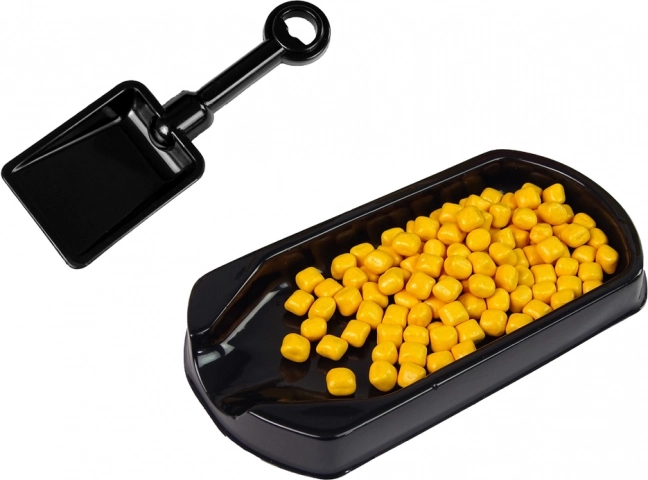 Zestaw zawiera wszystko, co potrzebne do różnorodnych zabaw budowlanych, w tym małe plastikowe kamyczki i łopatkę.