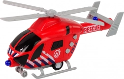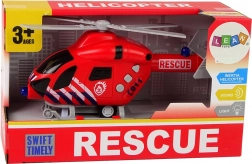 Śmigłowiec jest wyposażony w napęd frykcyjny: wystarczy pociągnąć do tyłu i puścić, co zapewnia realistyczną zabawę w misje ratunkowe.