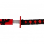 Szare zabarwienie przypomina prawdziwe ostrze, czerwona pochwa dodaje autentyczności.