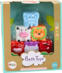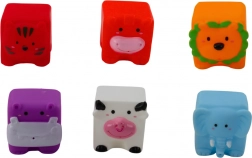 Zestaw zawiera 6 kostek w kształcie zwierząt, takich jak lew, słoń czy hipopotam, co nie tylko bawi, ale także uczy rozpoznawania różnych gatunków. Każda z tych kostek ma unikalne cechy wspierające rozwój umiejętności poznawczych dziecka.