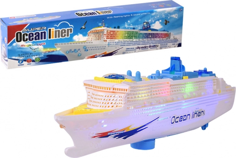 Odkryj zabawę na falach z interaktywną zabawką – pasażerskim statkiem wycieczkowym, który sam się porusza, omija przeszkody i oferuje realistyczne odgłosy morza oraz kolorowe światła. Dzięki funkcji wykrywania przeszkód zmienia kierunek i zapewnia dzieciom autentyczne wrażenia z kapitańskiego rejsu.