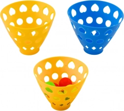 Koszyczki i piłeczki wykonane są z solidnego, lekkiego plastiku. Intensywne kolory zachęcają do zabawy, a materiał łatwo się czyści – idealny do ogrodu, parku i dziecięcego pokoju.