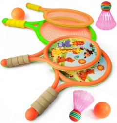 .Rakiety wykonane są z bezpiecznego plastiku i doskonale dopasowane do małych dziecięcych rączek. Miękka pianka na rączce zapewnia wygodny chwyt i minimalizuje ryzyko otarć lub urazów. Dzięki temu nawet najmłodsi gracze będą czuć się podczas gry pewnie i komfortowo.