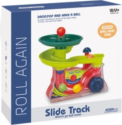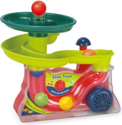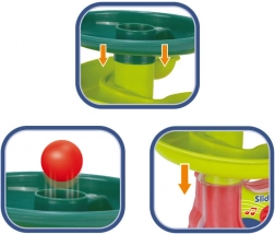 Spiralny tor odprowadza kuleczki z powrotem do mechanizmu, tworząc nieprzerwany cykl zabawy, który wciąga dzieci na długie minuty.