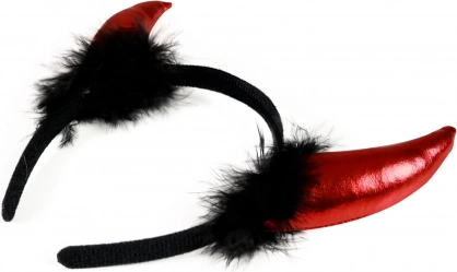 Diabelskie rogi na opasce, ozdobione delikatnymi piórami, dopełnią twój piekielny kostium! Te rewelacyjne różki przemienią cię w czarującą diablicę lub diabła!