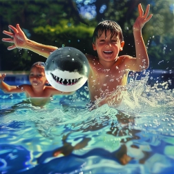 Podwodna piłka rekin SPORTO przynosi dzieciom i dorosłym nieskończoną porcję letniej zabawy. Dzięki sprytnemu rozwiązaniu wypełnienia wodą lub powietrzem możesz cieszyć się grami pod wodą i na lądzie. Realistyczny design rekina przyciąga wzrok i motywuje do ruchu oraz treningu umiejętności pływackich.