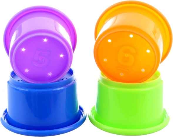 Cztery kubeczki z numerami i otworami są idealne do budowania wież, nauki liczenia oraz zabawy wodą. Ćwiczą chwyt, logikę i koordynację.