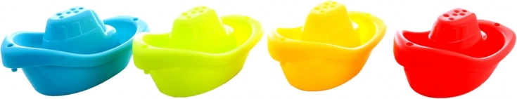 Cztery pływające łódeczki w żywych kolorach urozmaicą kąpiel. Otwory pozwalają nabierać i przelewać wodę, co wspiera koordynację oraz zachęca do ciekawych eksperymentów.