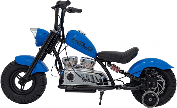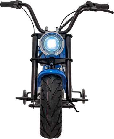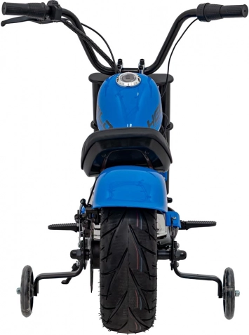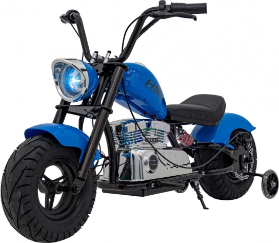 Podaruj dzieciom realistyczne wrażenia z jazdy motocyklem. Ten niebieski elektryczny chopper łączy atrakcyjny design z przemyślanym bezpieczeństwem. Wydajny bezszczotkowy silnik 350 W w połączeniu z systemem bateryjnym 36 V zapewnia płynną i niezawodną jazdę, a pompowane koła 32 × 10 cm oraz tylne amortyzowanie dbają o komfort na nierównościach.