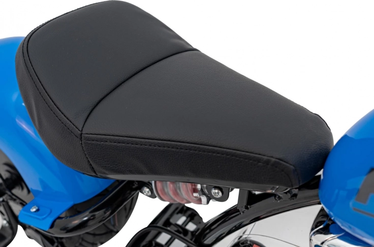 Na pierwsze kroki w siodle posłużą demontowalne boczne kółka, które dodają stabilności i pewności. O zabawę zadba przednie oświetlenie LED, podświetlany silnik oraz panel audio z MP3, USB, wbudowanymi melodiami i imitacją dźwięku silnika. Wygodne siedzisko z ekoskóry zapewni komfort także podczas dłuższej jazdy.