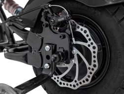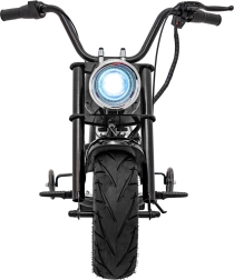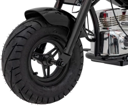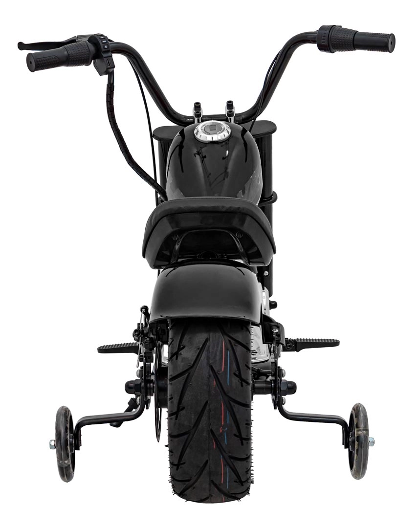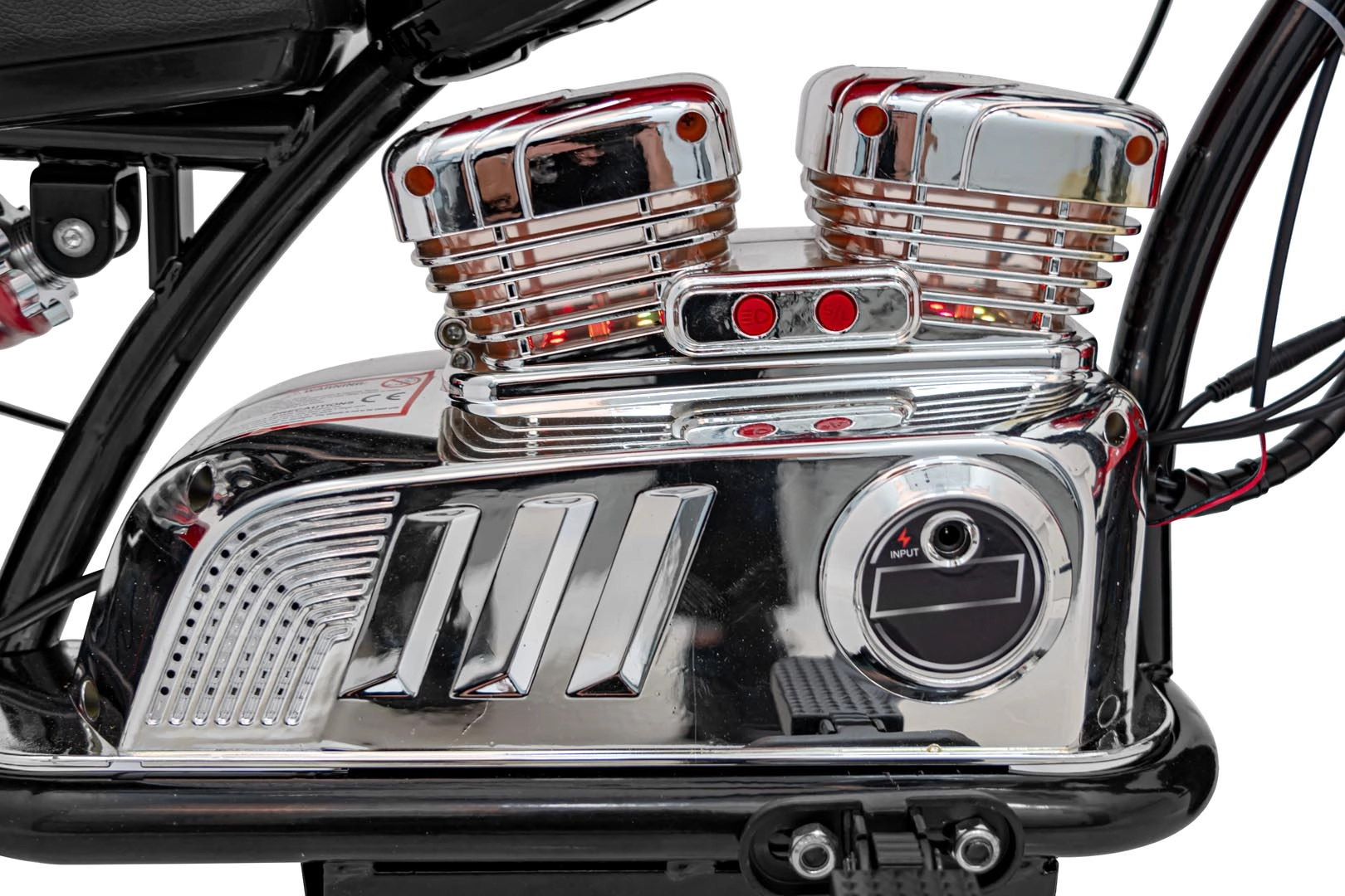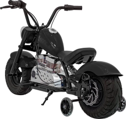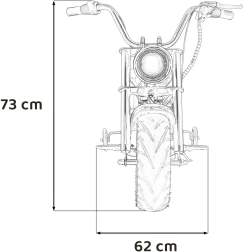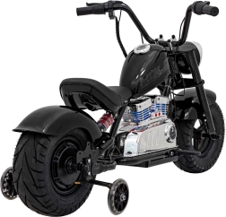Elektryczny chopper Warrior w czarnym kolorze to świetny wybór dla małych kierowców, którzy cenią realistyczny wygląd i wygodę jazdy. Dzięki bezszczotkowemu silnikowi 350 W i zestawowi akumulatorów 36 V zapewnia płynne przyspieszenie poprzez obrotową manetkę oraz wystarczającą moc na prostej i lekkim wzniesieniu. Szerokie, pompowane koła 32 × 10 cm doskonale tłumią nierówności i zwiększają stabilność.