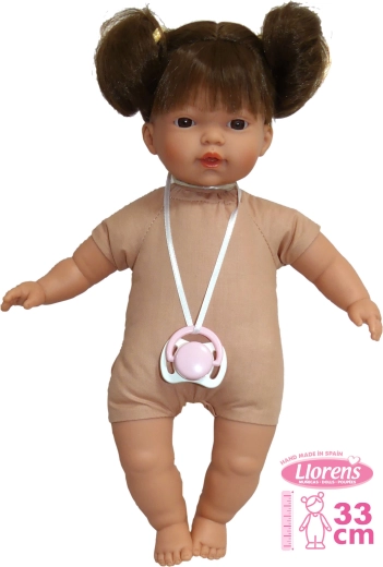 Funkcjonalność: Po wyjęciu smoczka z ust lalka mówi "mama", "papa" i wydaje realistyczny dźwięk płaczącego dziecka. Te dźwięki można zatrzymać za pomocą magnetycznego smoczka. Model nie zawiera ubrania; polecamy zakup oryginalnych ubrań Llorens dla wielkości 33 cm.