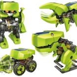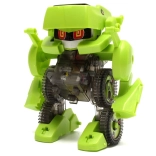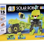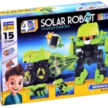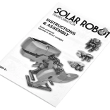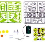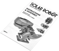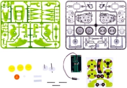 Zawarte komponenty: plastikowe części do złożenia robota, panel solarny, silnik, plastikowe oczka, naklejki i instrukcja obrazkowa.