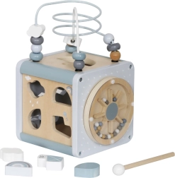 Drewniana edukacyjna kostka oferuje wiele atrakcji, które z pewnością zainteresują i oczarują Twoje dziecko. Każdy element jest starannie zaprojektowany, aby idealnie pasował do rąk małego odkrywcy. Solidna konstrukcja z drewna gwarantuje trwałość, a delikatna pastelowa grafika pobudza wyobraźnię i rozwija koncentrację. Ruchome elementy, które można przesuwać, naciskać i nimi manipulować, wspierają rozwój zdolności manualnych i zapewniają jednocześnie zabawną i rozwijającą grę.