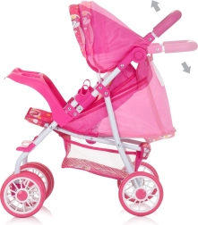 Pasek bezpieczeństwa utrzyma lalkę na miejscu, regulowana budka ochroni przed słońcem, a koszyk pod siedziskiem pomieści wszystko, co potrzebne.
