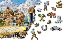 Laserowo wycinane drewniane puzzle WOODEN CITY ze specjalnie kształtowanymi elementami są niezwykle zabawne. Część elementów ma kształt zwierząt, budowli lub przedmiotów, a laserowo podkreślone detale potęgują efekt końcowy. Te elementy mogą samodzielnie stać jako małe figurki. Układanie puzzli z elementami o różnych kształtach jest trudniejsze i stanowi większe wyzwanie niż układanie klasycznych puzzli. Puzzle są dodatkowo dwustronne – można je układać zarówno według obrazka (strona licowa), jak i według kształtu (strona spodnia z wzorem). Marka WOODEN CITY, poza unikalną koncepcją puzzli, nie zapomina o ekologii, dlatego w tych produktach nie znajdziesz żadnych plastikowych opakowań.