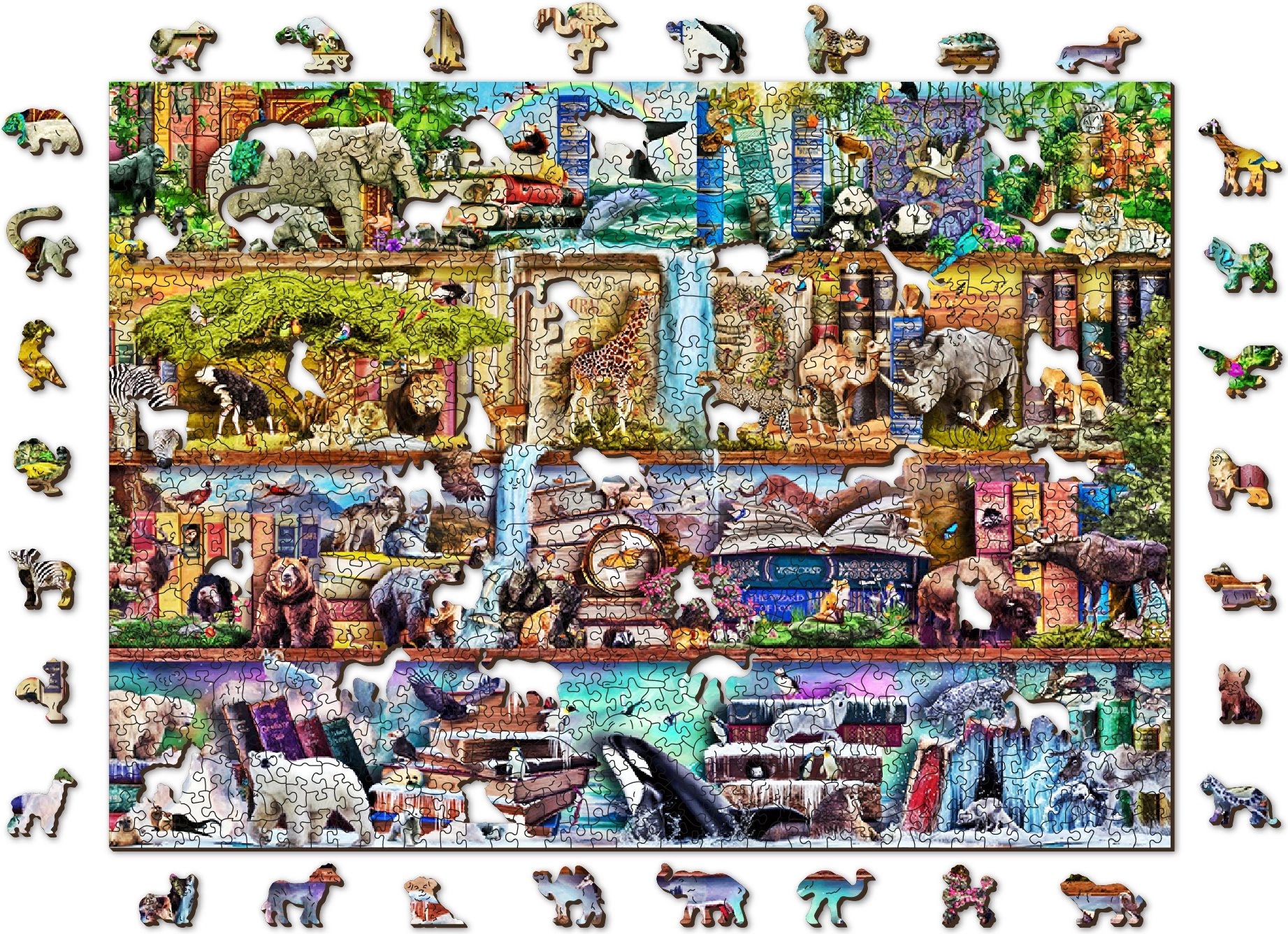 Laserowo wycinane drewniane puzzle WOODEN CITY ze specjalnie kształtowanymi elementami są niezwykle zabawne. Część elementów ma kształt zwierząt, a laserowo podkreślone detale potęgują efekt końcowy. Te elementy mogą samodzielnie stać jako małe figurki. Układanie puzzli z różnokształtnymi elementami jest trudniejsze i stanowi większe wyzwanie niż układanie klasycznych puzzli. Marka WOODEN CITY, oprócz unikalnej koncepcji puzzli, nie zapomina o ekologii, dlatego w tych produktach nie znajdziesz żadnych plastikowych opakowań.