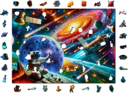 Odkryj radość z układania dzięki drewnianym puzzlom WOODEN CITY Odkrywanie kosmosu. Dzięki laserowo wycinanym elementom, z których wiele ma unikalne kształty zwierząt, otrzymasz piękny obraz i jednocześnie angażujące wyzwanie. Puzzle oferują wyższy poziom trudności przy mniejszej liczbie elementów, gładkie krawędzie bez drzazg i są w pełni eko-friendly, bez tworzyw sztucznych.