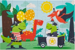 Te kolorowe puzzle z motywem dinozaurów to świetny wybór na pierwsze układanki. Duże elementy dobrze leżą w dziecięcych dłoniach, pomagają rozwijać koordynację ręka–oko i wspierają logiczne myślenie. Po ułożeniu otrzymasz wesoły obrazek o wymiarach 29 × 18 cm.