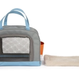 Wytrzymała i lekka torba z siateczką wentylacyjną, kieszeniami i miękką matą pozwala bezpiecznie zabrać kotka ze sobą wszędzie.