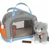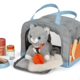Pluszowy kotek z uprzężą, torba transportowa z matą, miska, pojemnik na przysmaki, pęseta, bandaż, pudełko na leki, zabawka, szczotka, strzykawka ze sprężynowym mechanizmem