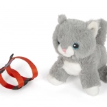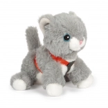 Miękki kotek z uprzężą świetnie nadaje się do przytulania i nauki opieki, rozwijając empatię i odpowiedzialność.