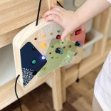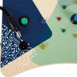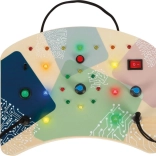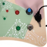 Ta drewniana tablica aktywności oferuje dzieciom bezpieczny i angażujący sposób odkrywania świata elektroniki. Naciśnięcie górnego czerwonego przycisku uruchamia sekwencję LED, centralnym niebieskim pokrętłem ustawisz prędkość zapalania w okręgu, a za pomocą przełączników, klucza w zamku czy podłączonej wtyczki zmienisz tryby świateł. Każda interakcja natychmiast nagradza ciekawość dziecka i wzmacnia jego koncentrację.