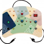 Górny czerwony przycisk uruchamia atrakcyjne sekwencje LED, których prędkość ustawisz centralnym niebieskim pokrętłem. Dzieci od razu widzą reakcję na swój bodziec.