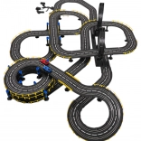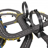 Duży tor wyścigowy w skali 1:43 z dwoma samochodzikami zdalnie sterowanymi dla dzieci od 3 lat. Poszczególne elementy konstrukcyjne umożliwiają zbudowanie toru z ostrymi zakrętami, spiralami i prostymi odcinkami, wszystko to dla maksymalnej zabawy i zwiększenia emocji z całej gry. Ten wyjątkowy zestaw jest idealną zabawką dla małych miłośników wyścigów samochodowych. Tor jest wyposażony w licznik okrążeń. Zasilanie: prąd 220 V - 50 Hz. |