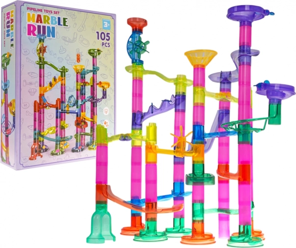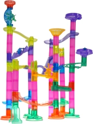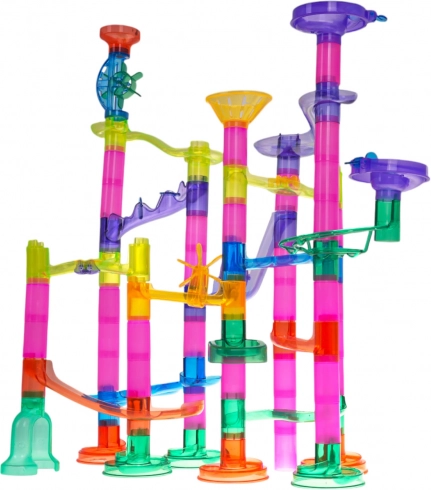 Dzięki 105 elementom zbudujesz proste i złożone trasy ze spiralami, lejkami i tunelami. Dzieci rozwijają wyobraźnię i uczą się rozwiązywać problemy podczas projektowania stabilnego toru.