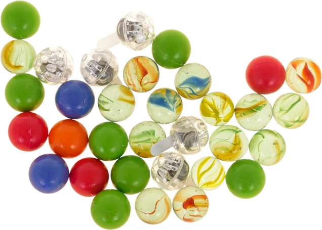 W zestawie znajduje się 33 kulek, z czego 5 migających z kolorowymi diodami LED. Efekty świetlne zachęcają do testowania nowych tras i wydłużają czas zabawy.