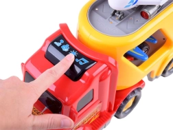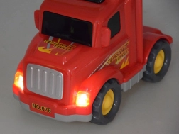 Ten duży dziecięcy ciągnik z naczepą jest idealny dla małych kierowców i pilotów. Dzięki napędowi frykcyjnemu wystarczy popchnąć zabawkę po gładkiej powierzchni, a ruszy do przodu. Na dachu kabiny znajduje się przycisk, który aktywuje realistyczne dźwięki silnika, klaksonu oraz efekty świetlne, dzięki czemu zabawa jest jeszcze ciekawsza.