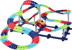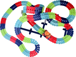 Zbuduj dla dzieci własny wyścigowy świat: długi, giętki i skrętny zestaw torów samochodowych z aż 291 elementami pozwala tworzyć szalone pętle, mosty i wzniesienia. Tor ma do 580 cm długości, składa się z kolorowych segmentów, a dzięki przyssawkom można go zamocować także na gładkich ścianach lub oknach dla naprawdę ekstremalnych konstrukcji. W zestawie jest samochodzik z napędem ze światłami, gumowymi paskami na kołach dla lepszej przyczepności oraz akumulatorem do ładowania z kablem USB.