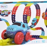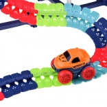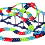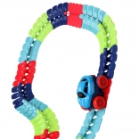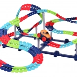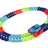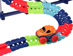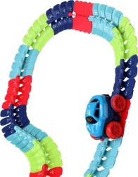 Ta kolorowa kolejka samochodowa wspiera wyobraźnię, małą motorykę i cierpliwość. Dzięki elastycznym łączeniom możesz tor dowolnie kształtować, wyginać i zmieniać – od krótkich sprintów po imponujące parki pełne zabawy. Autko z diodami LED po włączeniu rusza samo i radzi sobie nawet z ostrzejszymi zakrętami.