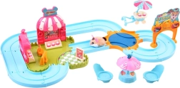 Odkryj kolorową interaktywną kolejkę z lodziarnią, w której uroczy pluszowy chomik rozwozi smakołyki. Po uruchomieniu zwierzątko porusza się samo i zmienia kierunek, a tor oferuje zwrotnicę i wiele dodatków do bogatej zabawy. W zestawie znajduje się także wózek, stolik z parasolką, krzesełka oraz atrapy deserów – wszystko do kreatywnej, długotrwałej zabawy dla dzieci. Bateria AG13 jest w zestawie, a kolor chomika wysyłany jest losowo.