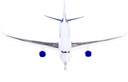 Ten duży model samolotu pasażerskiego ucieszy każdego małego miłośnika lotnictwa. Wysokiej jakości plastikowe wykonanie z dbałością o detale, kolorowe okleiny kadłuba, skrzydeł i części ogonowej oraz wytrzymała konstrukcja gwarantują długą żywotność podczas codziennej zabawy. Zintegrowany napęd umożliwia realistyczne kołowanie po „pasie startowym”, a światła i dźwięki przybliżają atmosferę prawdziwego lotniska.
