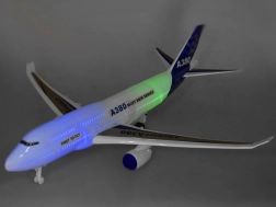 Po aktywacji przełącznikiem w podwoziu model odtwarza dźwięki startu, lądowania i pracy silników, którym towarzyszy migające oświetlenie wewnątrz kadłuba.