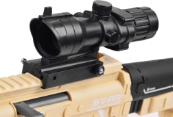 Ergonomiczny uchwyt i piaskowe wykończenie z dodatkami, takimi jak celownik, zapewniają realistyczne, a zarazem bezpieczne wrażenia z gry.