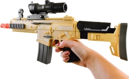 Ten lekki plastikowy karabin w taktycznym wydaniu „desert” pobudza wyobraźnię i zachęca do aktywności ruchowej. Dzięki piankowym nabojom zabawa jest bezpieczna i odpowiednia dla dzieci, które kochają akcję, celowanie do tarcz i drużynowe gry fabularne.