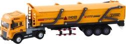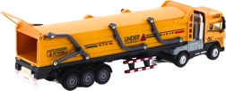 Ciężarówka ma zdejmowaną naczepę, a jej kontener można otworzyć, aby ułatwić załadunek materiałów. Funkcja otwierania drzwi naczepy wzbogaca zabawę o realistyczny element. Dzieci mogą symulować transport piasku, żwiru i innych materiałów, wspierając swoją kreatywną i interaktywną zabawę.