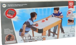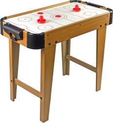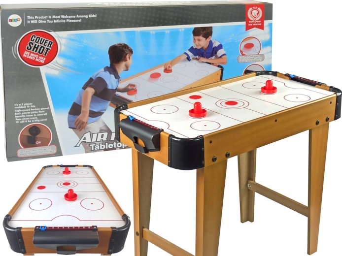 Dzięki kompaktowym wymiarom i lekkiej, drewnianej konstrukcji stół zmieści się w każdym pomieszczeniu. Wykonany jest z bezpiecznych i wysokiej jakości materiałów, co gwarantuje bezpieczną zabawę. Dodatkowo ćwiczy spostrzegawczość i szybkość reakcji, co zaprocentuje w przyszłości. Powierzchnia stołu jest pokryta otworami, przez które tłoczone jest powietrze. Powstaje poduszka powietrzna, po której krążek ślizga się bez kontaktu z podłożem.