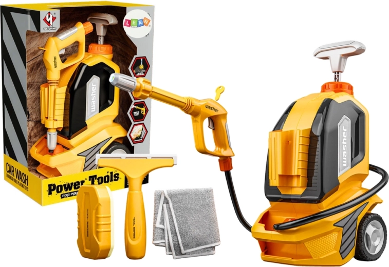 Zabawna i bezpieczna dziecięca myjka wodna bez baterii dla małych pomocników w domu. Wystarczy napełnić zbiornik, pompować uchwytem i uruchomić strumień wody. W zestawie ściągaczka, gąbka i ściereczka dla realistycznej zabawy. Rozwija małą motorykę, koordynację i kreatywność. Wykonana z wysokiej jakości, wytrzymałych materiałów bez ostrych krawędzi, z certyfikatem CE i normą EN71.