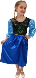 Ten dziewczęcy kostium przemieni każdą małą elegantkę w księżniczkę z zimowego królestwa. Błyszcząca niebieska spódnica i czarny gorset z delikatnym nadrukiem tworzą elegancki wygląd, który wyróżni się na karnawale, urodzinach i podczas domowych przebieranek.
