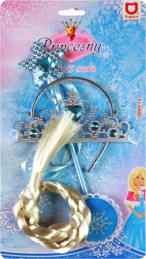 Zostań czarodziejską zimową księżniczką dzięki temu pięknemu zestawowi, który zawiera koronę, różdżkę i elegancki warkocz w niebieskich odcieniach.
