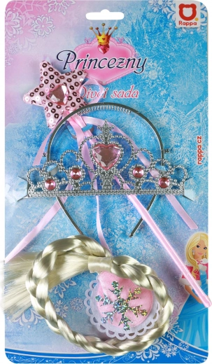 Uroczy zestaw dla małych księżniczek zawiera koronę, magiczną różdżkę oraz długi warkocz ok. 62 cm w delikatnym różowym kolorze. Świetny na karnawał, do kostiumów i domowej zabawy, odpowiedni od 3 lat.