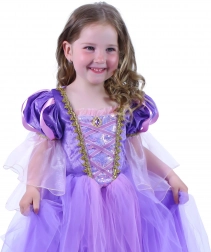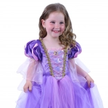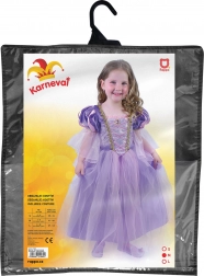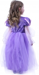 Dopracowane detale w odcieniach fioletu oraz złote lamowanie nadają kostiumowi odświętny wygląd, idealny na karnawał, urodziny i domowe przebieranki.