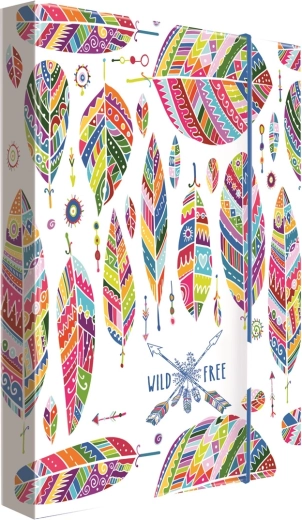 Stylowe i praktyczne pudełko na zeszyty w formacie A4 Jumbo z motywem Piórek. Idealne dla uczniów i studentów do przechowywania zeszytów, papierów i przyborów. Dzięki laminowanej powierzchni jest odporne na uszkodzenia, utrzymuje porządek i chroni zawartość. Praktyczne zapięcie na gumkę oraz szerokość grzbietu 4 cm zapewniają dużo miejsca.