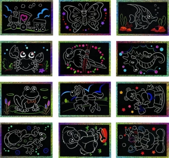Ten zestaw zdrapywanek to idealny wybór na pierwsze twórcze próby. Prosta zasada zdrapywania całego motywu bez skomplikowanych detali jest łatwa do zrozumienia, a efekt widać od razu: piękne błyszczące i kolorowe obrazki, które efektownie się mienią.