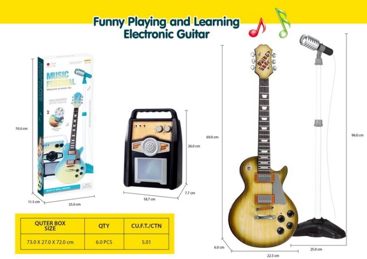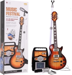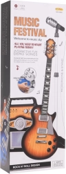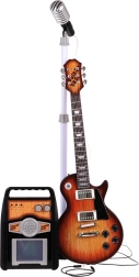 Ten kreatywny zestaw muzyczny to idealny wybór dla dzieci od 3 lat. Gitara elektryczna w brązowym wykończeniu wygląda jak prawdziwy instrument, do wzmacniacza podłączysz ją dołączonym kablem, a dziecko może od razu zacząć grać i śpiewać do mikrofonu na stabilnym statywie. Wzmacniacz umożliwia niezależną regulację głośności gitary i mikrofonu, oferuje wejście dla gitary, mikrofonu oraz zewnętrznego MP3. O atmosferę dbają kolorowe światełka, które migają w rytm muzyki.
